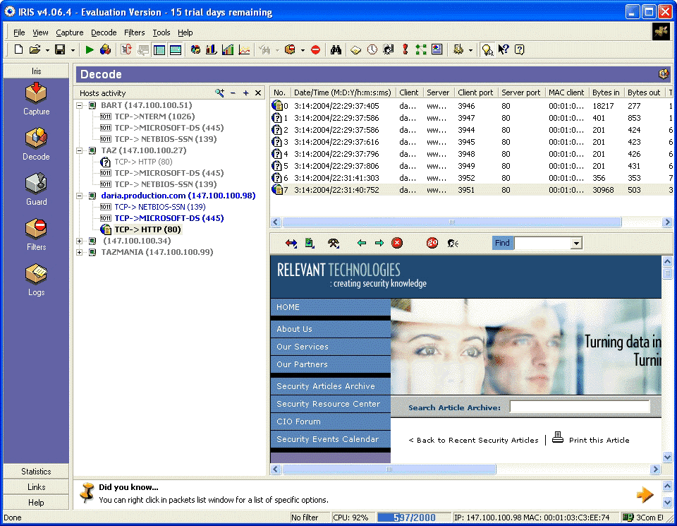 Figure B: Iris can reassemble a Web page that someone else had been looking at.