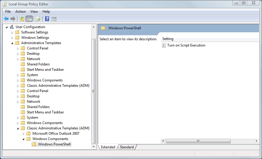 Figure 2. The PowerShell Template only provides you with one group policy setting